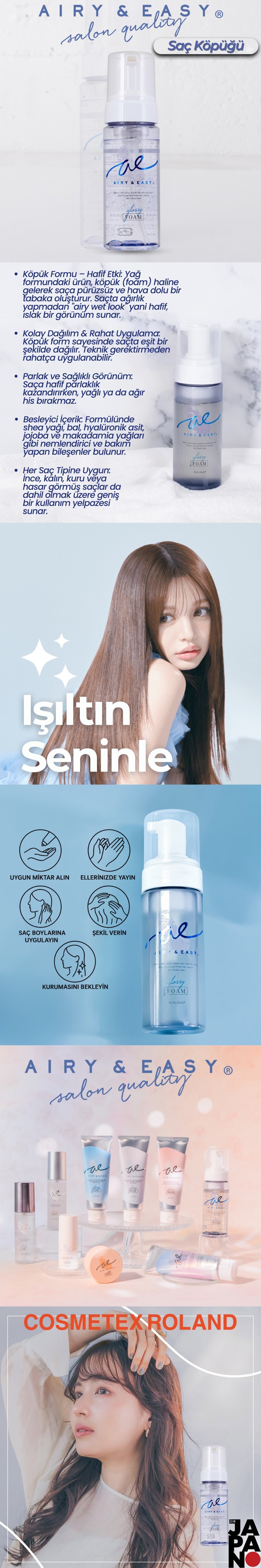 Cosmetex Roland Airy&Easy Glossy Oil Foam Saç Köpüğü