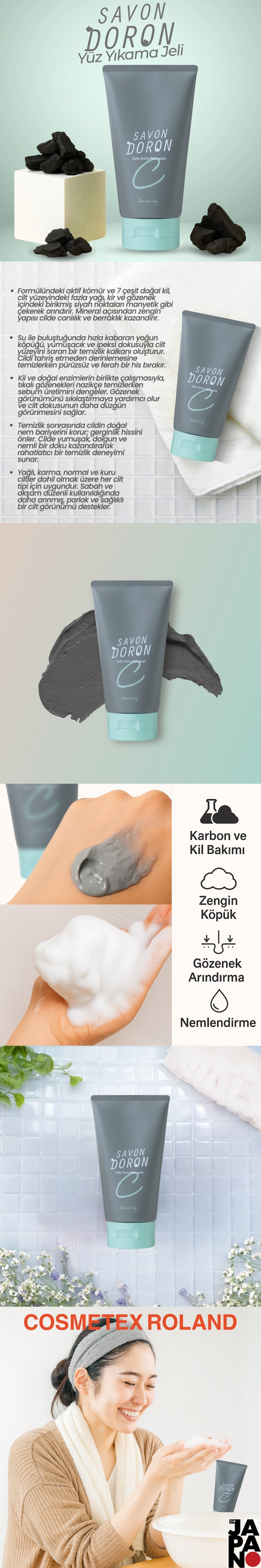 Cosmetex Roland Savon Doron Arındırıcı Kömür Özlü Yüz Yıkama Jeli